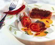 Plätzli mit Salz, Pfeffer und Oregano würzen, ausbreiten, mit Peperoni belegen, aufrollen, mit einem Zahnstocher fixieren. In heissem Oel ca.5 Minuten rundherum anbraten, auf die vorgewärmte Platte legen und im Ofen ca. 25 Minuten garziehen lassen. Die Rouladen können ohne Qualitätsverlust bei 60°C bis zu 20 Minuten warm gehalten werden.